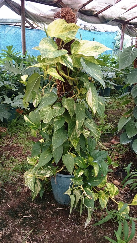 علاوه بر حالت آویز ویا پرورش ساقه در آب میتوان با هدایت و پیچاندن پتوس به دور چوبی که ازخزه پوشانده شده است گیاهی زیبا به دست آورد ( پوتوس چوبدار).