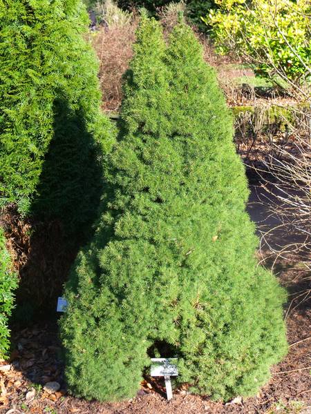 کاج کونیکا -این درخت کند رشد بسیار زیبا و دارای برگهایی بشکل سوزن های کوتاه میباشد که به حالت کروی و مخروطی با نظم خاصی در کنار یکدیگر قرار گرفته اند.و مانند کوه سبز دیده می شود و این گیاه بسیار کندرشد بوده و به عنوان درخت کند رشد معروف است.