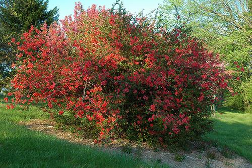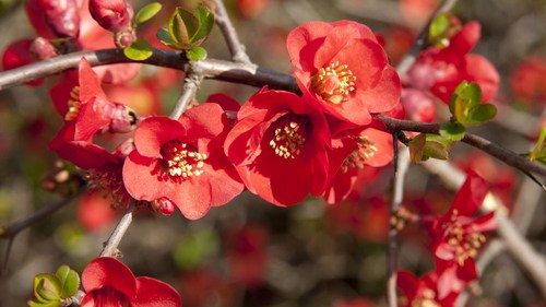 مشاهده شکوفه های خوش رنگ در درختچه کوچک و گرد به ژاپنی در اواخر زمستان آمدن بهار را نوید می دهد. این شکوفه ها به مدت حدود 10 روز باز هستند و سپس فرم خشن درختچه با شاخه های سخت و معمولا تیغدار و برگهای سبز تیره نمایان خواهند شد. این گیاه از گیاهان به اصطلاح سیاه ریشه محسوب میشود.