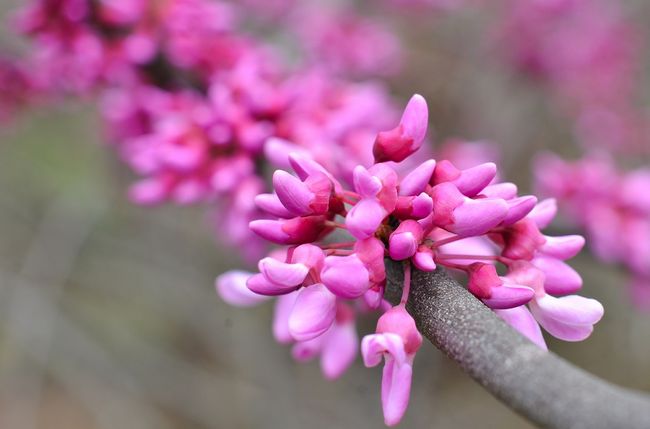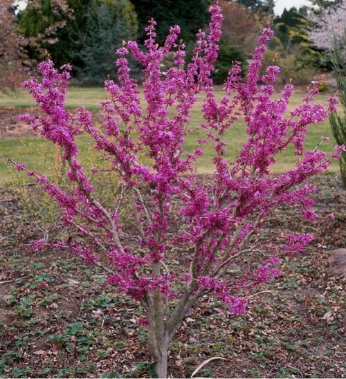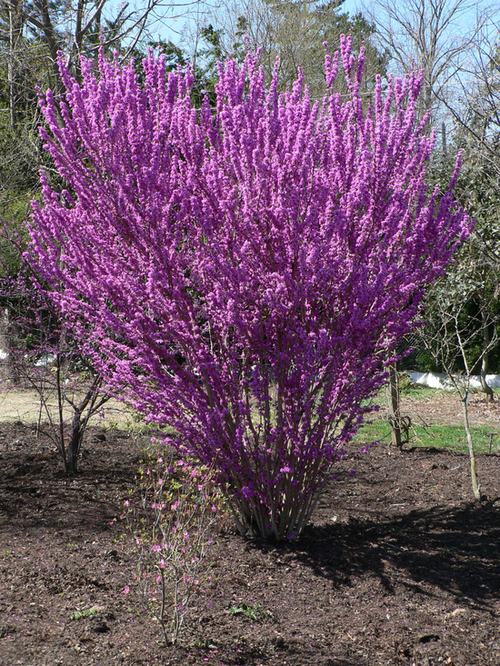 گل های ارغوانی این درختچه بر روی شاخه های لخت در اوایل بهار منظره دل انگیزی ایجاد میکند.