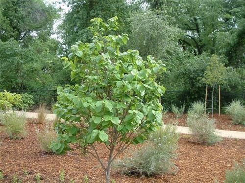 برگها قلبی شکل، پوست تنه نقره ای تیره و شاخه ها دارای چوب محکمی هستند. این درخت به خاطر اینکه تولید شاخه های زیادی در کنار هم در سطح زمین می کند، پرورش تک تنه ای آن مشکل است و بهتر است به همان شکل طبیعی و یا به فرم چند تنه ای تربیت شود.