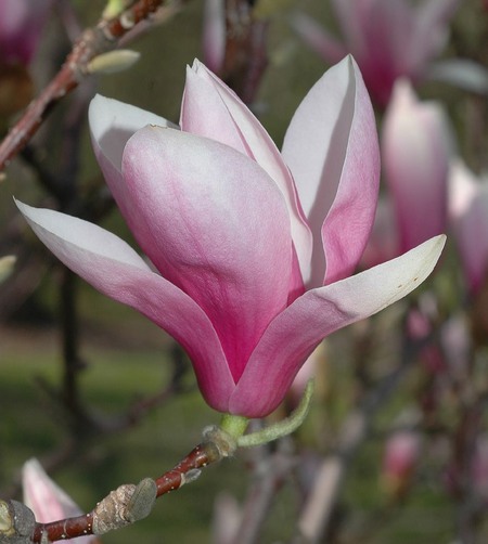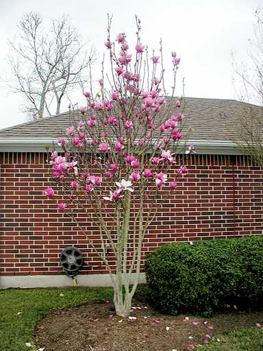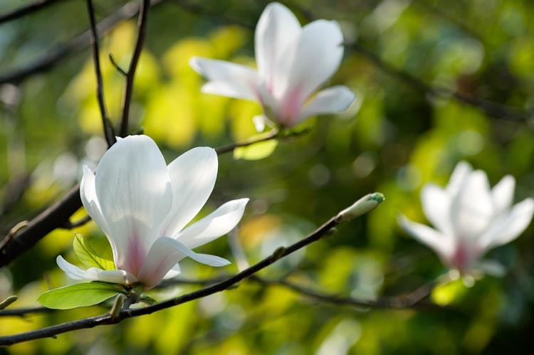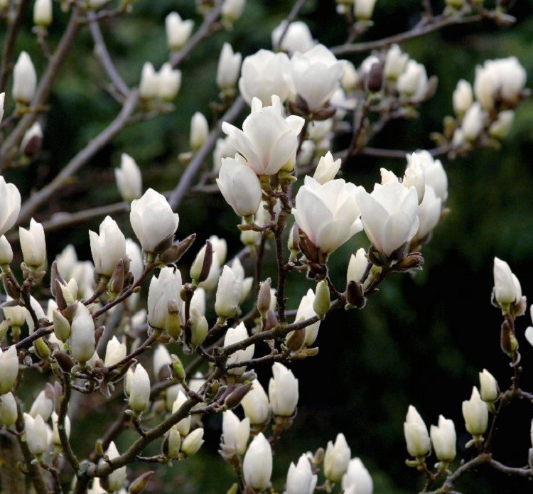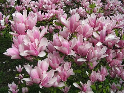 این گونه ماگنولیا خزان دار بوده و در اواخر فصل زمستان تولید گل های درشت و قشنگی می کند.گل ها به رنگ سفید تا قرمز دیده می شود و قبل از برگ ها باز می شوند.