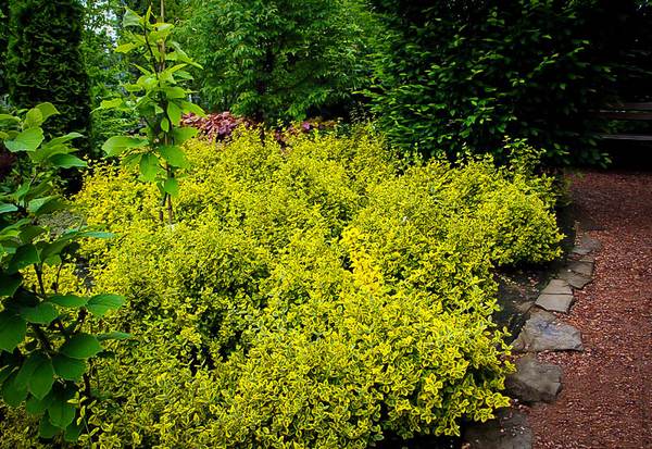 شمشاد ورنیا برگ درشت طلایی با نام علمی : Emerald N Gold Euonymus